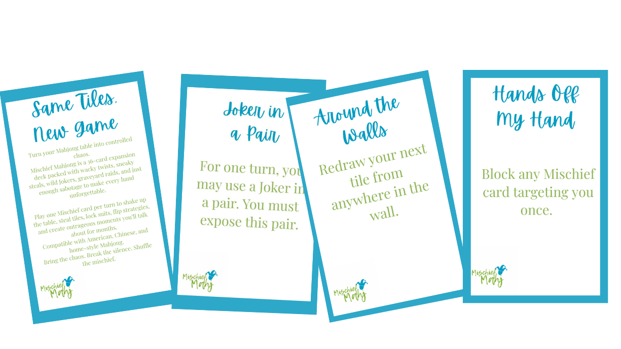 Mischief Mahj kicked off with a simple idea: blending perfection with a sprinkle of fun. Born amidst the tiles of a lively monthly mahjong bash, we were ready to inject some extra pizzazz. Our mission? Honor the game's roots while serving up a quirky and spirited spin.